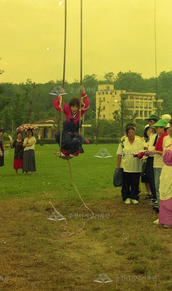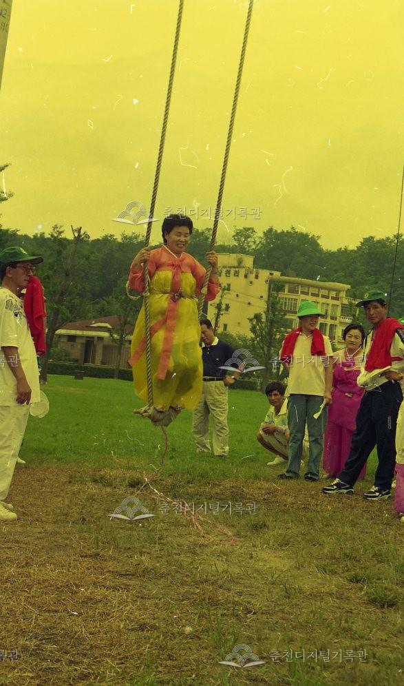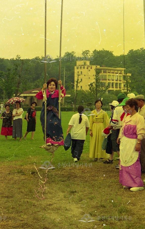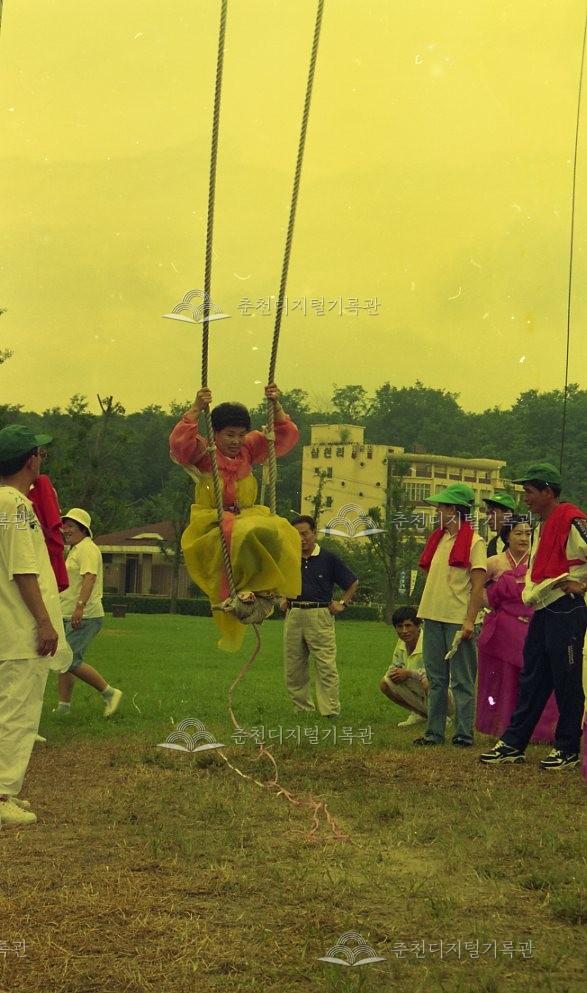 제19회 소양제 그네뛰기 등록번호 00006952 생산일자 1996.08.04 생산지역 춘천시 삼천동 생산자 오일주 수집처 오일주 소장자 춘천학연구소 내용 제19회 소양제 그네뛰기 모습이다. 사용안내 비상업적 이용만 가능|©춘천디지털기록관 상업적 사용·수정·재배포는 저작권자 동의 필요 다운로드 목록보기