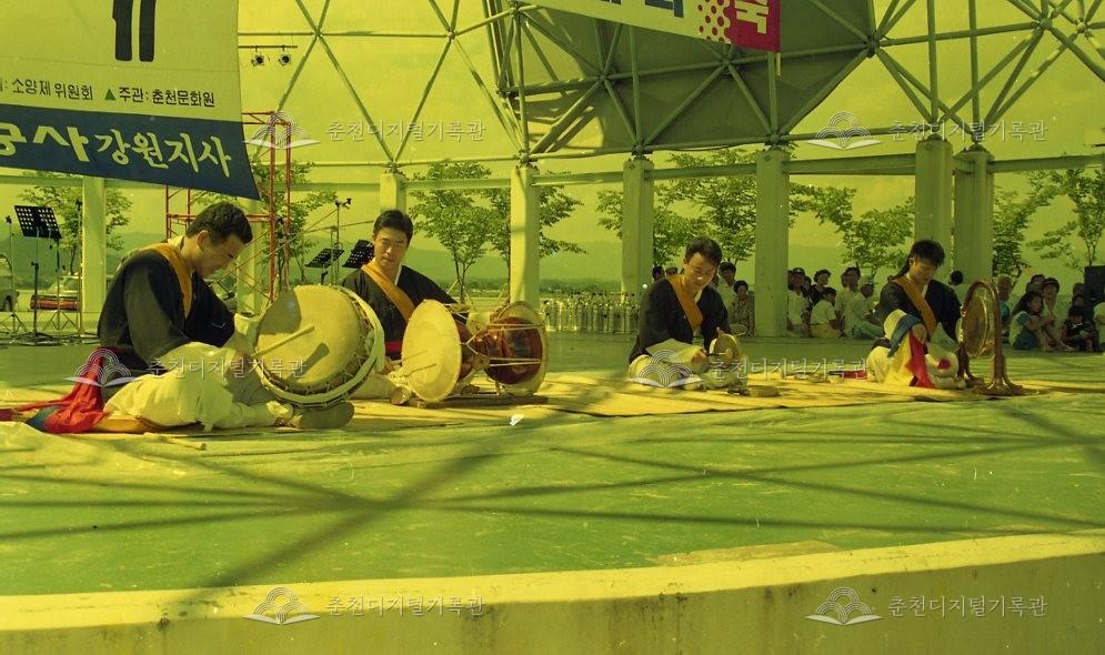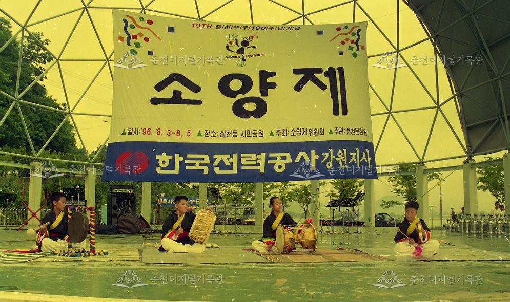 제19회 소양제 사물놀이경연대회 등록번호 00006955 생산일자 1996.08.04 생산지역 춘천시 삼천동 생산자 오일주 수집처 오일주 소장자 춘천학연구소 내용 제19회 소양제 사물놀이경연대회 모습이다. 사용안내 비상업적 이용만 가능|©춘천디지털기록관 상업적 사용·수정·재배포는 저작권자 동의 필요 다운로드 목록보기