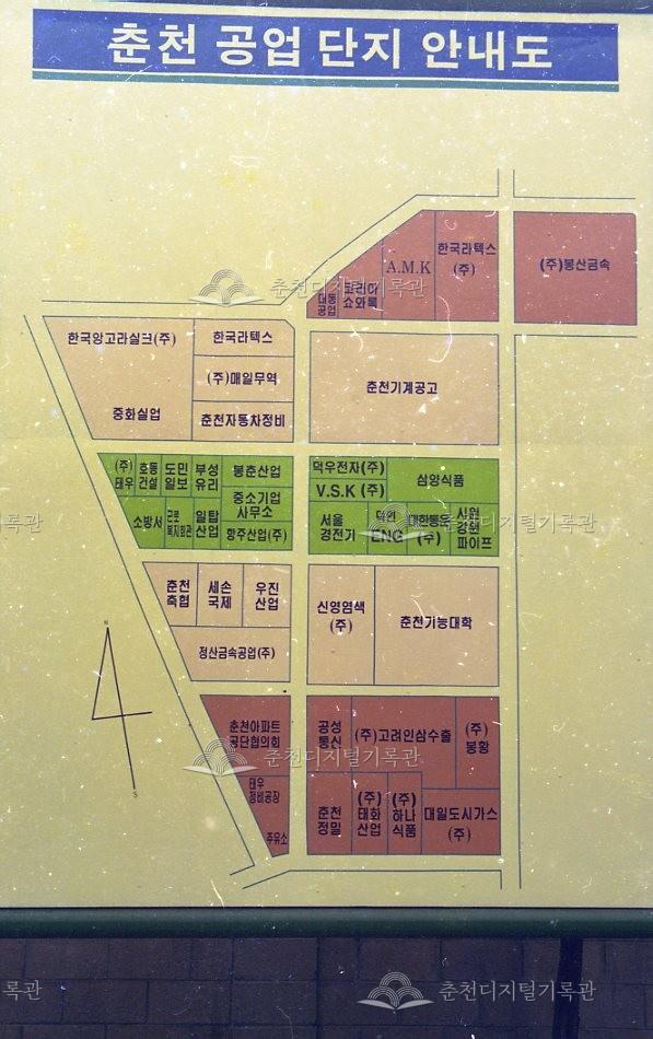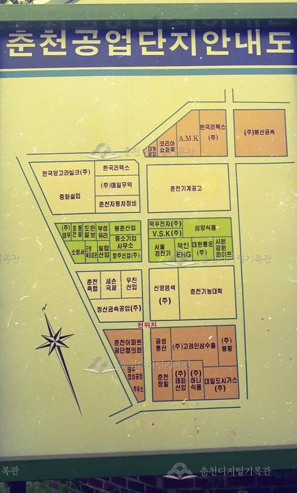 춘천공업단지 안내도 등록번호 00006976 생산일자 미상 생산지역 춘천시 후평동 생산자 오일주 수집처 오일주 소장자 춘천학연구소 내용 1990년대 춘천공업단지인 후평일반산업단지 안내도이다. 한국앙코라실크, 고려인삼수출, 동산금속, 한국라텍스, 삼양식품 등의 기업이 입주해있다. 자세히 보기 닫기 사용안내 비상업적 이용만 가능|©춘천디지털기록관 상업적 사용·수정·재배포는 저작권자 동의 필요 다운로드 목록보기
