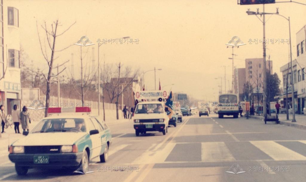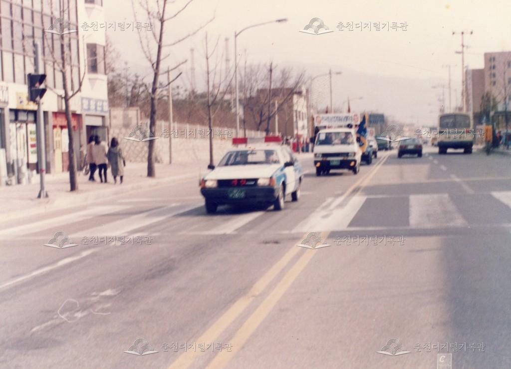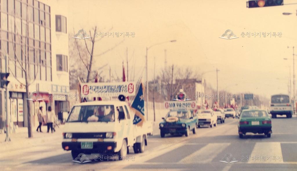 전국 빙상경기대회 남녀 우승 기념 카 퍼레이드 춘천교대부속국민학교 앞